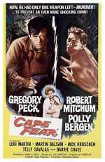 Cape Fear came at the end of the classical black-and-white film noir period (1942-62), and stars Mitchum in his most memorable villainous role, Max Cady. In this adaptation by James R. Webb of James D. MacDonald’s novel, “The Executioners,” an ex-con plots insidious revenge on the lawyer (Gregory Peck) whose testimony sent him to prison. Director J. Lee Thompson was an admirer of Alfred Hitchcock, and paid homage to the Master of Suspense with camera angles and the use of his frequent collaborator, composer Bernard Herrmann, who provided a superbly menacing score. Mitchum was so convincing in the role that co-star Polly Bergen (as Peck’s wife) said she was genuinely frightened in an improvised scene with him. Leonard Maltin calls Mitchum’s performance “believably creepy,” and the American Film Institute cited his portrayal of Cady as one of the top 30 “All-Time Screen Villains.” Martin Balsam, Lori Martin, Telly Savalas, and Barrie Chase co-star.