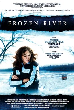 "Two days before Christmas in rural upstate New York, Ray Eddy’s husband has left her in an impossible situation—not only is he gone, but he has gambled away all of the family’s meager savings. Ray’s single wage at the Yankee One Dollar Store can’t make the house payment, and the situation forces Ray to feed her two sons popcorn and Tang everyday. When Ray strikes out to search for her husband, she encounters Lila Littlewolf, a tough, street-smart Mohawk woman who is dealing with her own struggle to make ends meet. But Lila has found a way to do it—smuggling illegal immigrants into the States. The tribal elders disapprove and attempt to stop Lila by forbidding anyone to sell her a car. Ray has a car, and although the two women don’t trust each other, they team up and share Ray’s Dodge Spirit to make a run across the frozen St. Lawrence River. Courtney Hunt’s remarkable and deeply emotional first feature is a realistic look at the world of human smuggling and the difficult choices facing poor, single mothers. A wonderfully directed film full of atmosphere, heart, and outstanding performances by Melissa Leo and Misty Upham, Frozen River is ultimately about the strength that resides in family and the way hope in a dire situation can be uncovered by courage and trust." (Sundance Film Festival)
