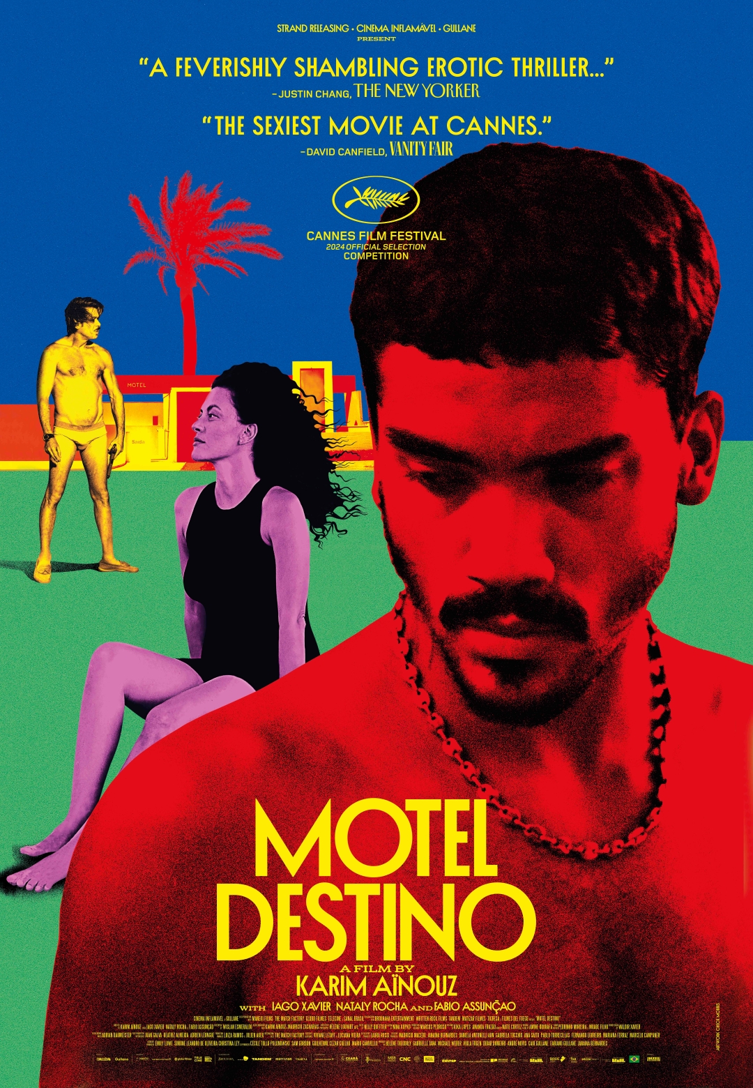 The neon-hued Motel Destino, a roadside sex hotel steaming under the burning blue skies of the northeastern coast of Brazil, is run by hotheaded Elias and his restless younger wife, Dayana. The unexpected arrival of 21-year-old Heraldo, on the run after a botched hit, disrupts the established order. As the tropical noir plays out, loyalties and desires intertwine to reveal that destiny has its own enigmatic design.