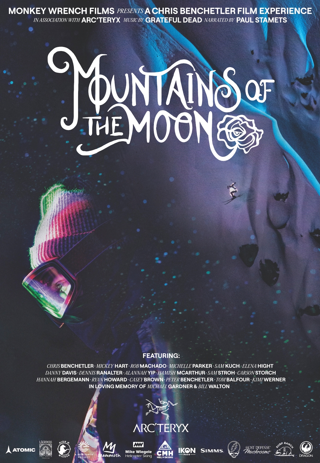 World renowned artist and skier Chris Benchetler explores the unseen connections between sport, life, music, and the living earth—set to the timeless tunes of the Grateful Dead. Captured almost entirely at night using cutting-edge cinematography, lasers, animation, and projection mapping, the film leads viewers on a surreal journey through ocean, river, and mountain landscapes.
