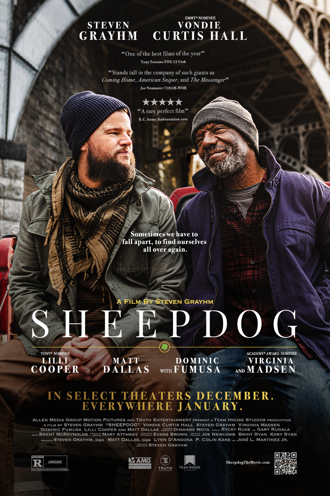 SHEEPDOG stars Academy Award Nominee Virginia Madsen (Sideways), Emmy Nominee Vondie Curtis Hall (Harriet), Tony Nominee Lilli Cooper (Tootsie, The Post), SAG Nominee Dominic Fumusa (13 Hours, Nurse Jackie), Matt Dallas (Kyle XY), and HFA Nominee Steven Grayhm (The Five People You Meet In Heaven). SHEEPDOG is the first film that truly explores the physical and psychological repercussions of trauma, with a focus on Post Traumatic Growth (PTG). It is an uplifting original story, inspired by countless first-hand accounts about recovery, redemption, and the journey of healing.