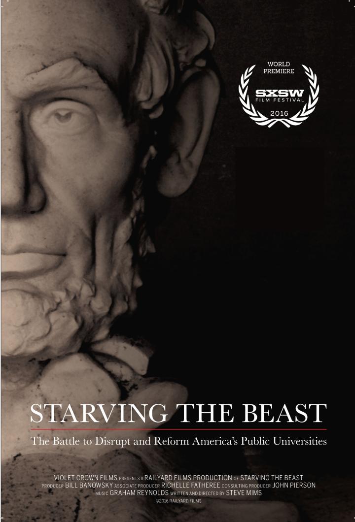STARVING THE BEAST examines the ongoing power struggle on college campuses across the nation as political and market-oriented forces push to disrupt and reform America’s public universities. The film documents a philosophical shift that seeks to reframe public higher education as a ‘value proposition’ to be borne by the beneficiary of a college degree rather than as a ‘public good’ for society. Financial winners and losers emerge in a struggle poised to profoundly change public higher education. The film focuses on dramas playing out at the University of Wisconsin, University of Virginia, University of North Carolina, Louisiana State University, University of Texas and Texas A&M.